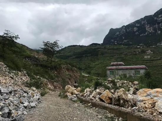 村民房子背后由挖路带来的石块。杨乔摄