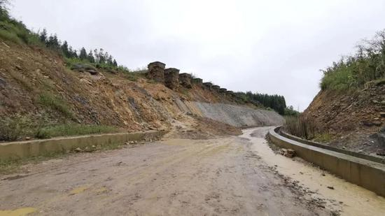 停工一年多后,路基早已失去了交工时的样貌,经过多场大雨,山石滚落,泥沙淤积。