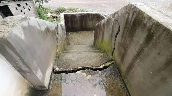 孙运成和其他村民表示,在挖掉部分土石方后,施工区于2018年年初发生了滑坡,施工区上方的附近住宅,几乎都受到波及,建筑出现开裂情况。
