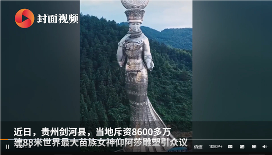 近日,有网友航拍贵州剑河县88米世界最大苗族女神像仰阿莎,十分震撼。但曾是贫困县的贵州剑河县耗费巨资建造“女神像”随即引发外界质疑。