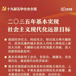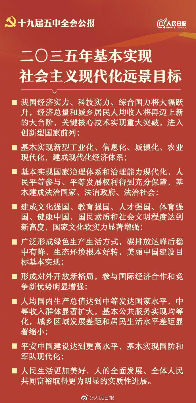 五中全会公报:2035年基本实现社会主义现代化远景目标 人民日报 《人民日报》官方账号 2020.10.2917:55 关注 #五中全会公报#【#2035年基本实现社会主义现代化远景目标#】9个方面,一图速览! 责任编辑:刘万里 SF014