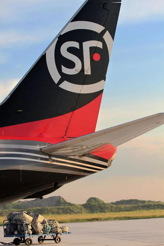 工作人员在江苏南通兴东机场装运顺丰航空的货物。图片来源:视觉中国