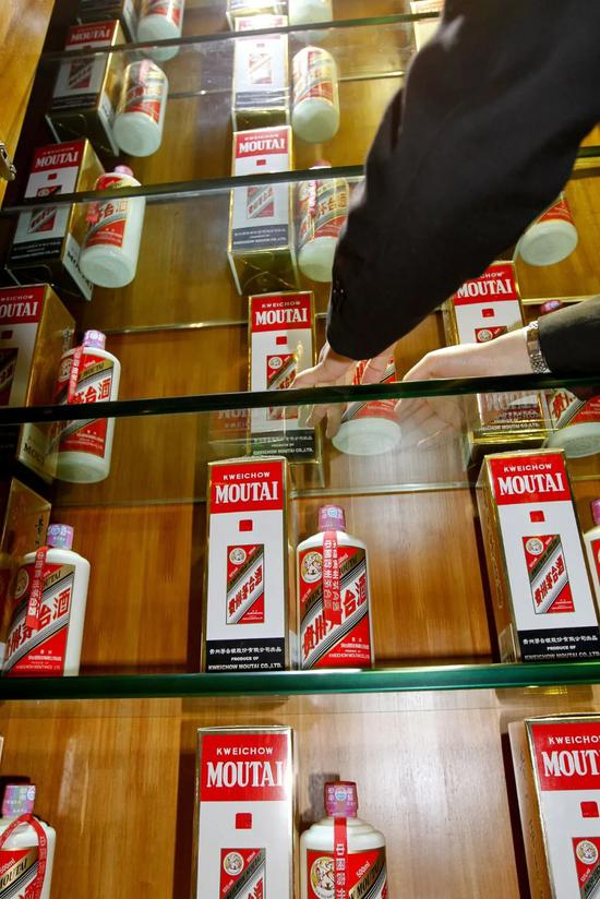 摆满柜子的陈年贵州茅台酒。图片来源:视觉中国