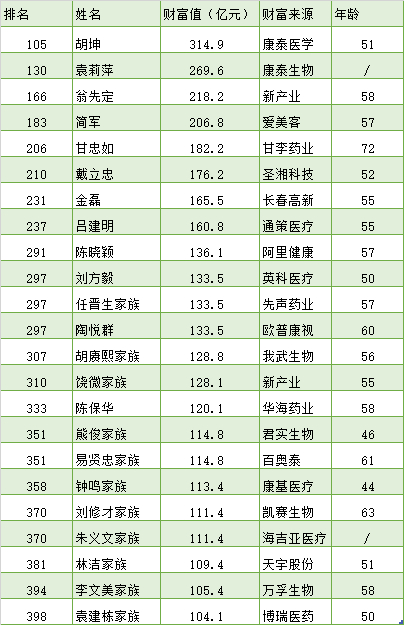 挤入福布斯富豪榜“C”位的医疗富豪们 新人最多财富增值不菲