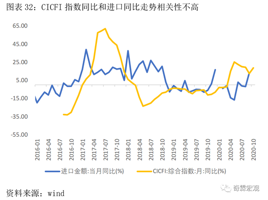 在具体预测时,可以用PMI新订单指数/进口指数的变化,来简单预判进出口的环比走势。但PMI和海关进出口数据的统计原理完全不一样,所以最多是判断变动方向,没法定量预测。