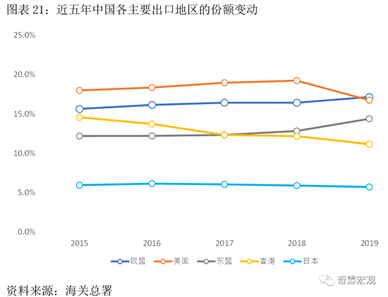 而韩国、台湾、日本、美国的占比则呈现下行状态。特别是对美进口占比,在2018-2019年明显跌落。