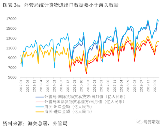 当然除了上述两个原因以外,还有其他一些统计细节的不同,导致海关数据和外管局货物贸易数据在绝对值上存在差距。