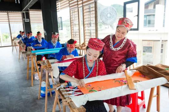 他介绍道,舞水云台现如今共有1297名苗家绣娘,匠人团队拥有非遗传承人4人,高级工艺大师4人,绣艺精湛绣娘52人,其中有37人曾获得省、州、县文化产业和苗绣技艺比赛奖项。