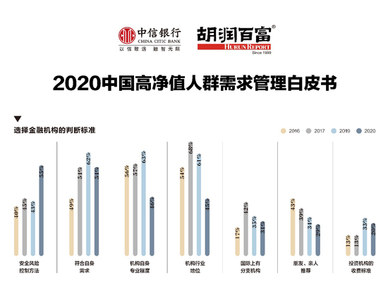 11月7日,以“中信温度·共赢未来”为主题的2020中信财富论坛在北京成功举办。本次论坛期间,中信银行私人银行与胡润研究院联合发布《探索·主动·更新——2020中国高净值人群需求管理白皮书》(Chinese HNWI Post COVID-19 New Normal)。