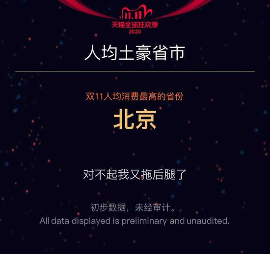 首先要提的是,“双11”人均消费最高的省份为北京,人均最“土豪”。