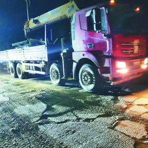 3日18时左右,记者采访车从鹤岗出发,驶入G332鹤嫩公路开往伊春,体验夜行国道。行进途中,路上不断有大货车经过,其中六轴大货车较多,其飞速行驶让很多小车“敬而远之”。由于道路破损严重,飞起的小碎石击打车身的“啪啪”声不绝于耳。在行驶的两个多小时里,记者没有看到相关执法人员对大货车进行检查。