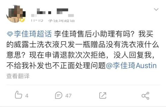 有网友指出,在李佳琦直播间购买的商品售后服务存在问题,一些合作商家的客服态度也不是很好。