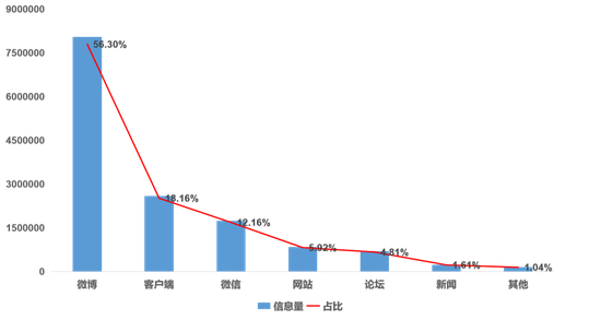 从信息传播渠道来看,微博是“双11”期间“消费维权”类信息传播主渠道,信息量占比56.30%;其次是客户端,信息量占比18.16%;第三是微信,信息量占比12.16%。
