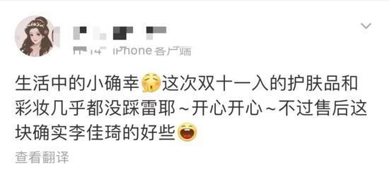 也有网友对李佳琦直播间的售后较为认可,但好评与差评并存的局面也侧面反映了李佳琦直播间的售后服务存在一定“漏洞”。