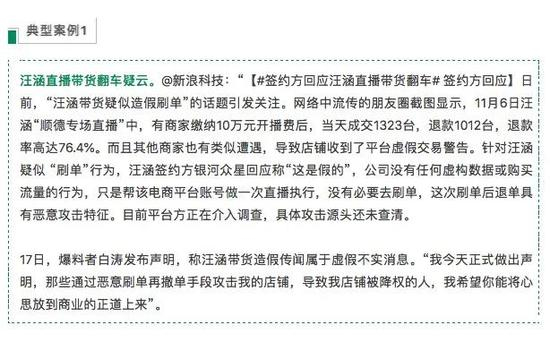 这一事件也成了《报告》中的典型案例——“汪涵直播带货翻车疑云”。