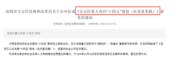 此前,宝安区发布了一个重要文件《宝安区重大项目“十四五”规(征求意见稿)》。