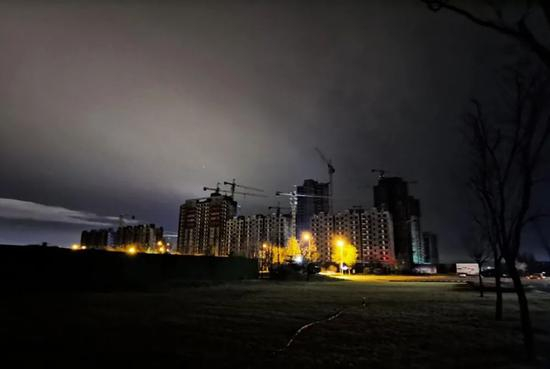 只有塔吊亮着灯,仍然不知疲倦建设着。