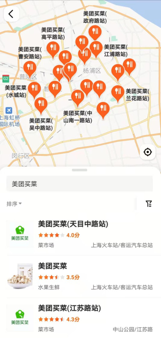 打开美团APP——美团买菜,根据用户的地理位置,系统会自动配置最近的“美团买菜”提货点,用户下单之后就可以尽快提到商品。