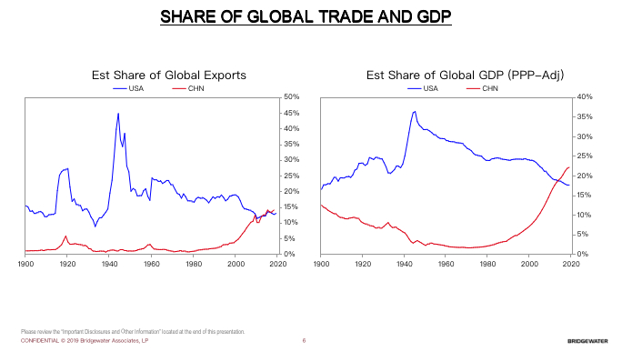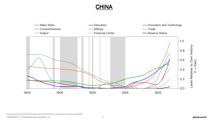 随着中国作为大国的不断崛起,中美两国出现了多种竞争,包括贸易战、科技战、资本战和地缘政治上的冲突。达利欧认为,中国会越来越强大,再加上美国自身的变化,都会带来更大的挑战。
