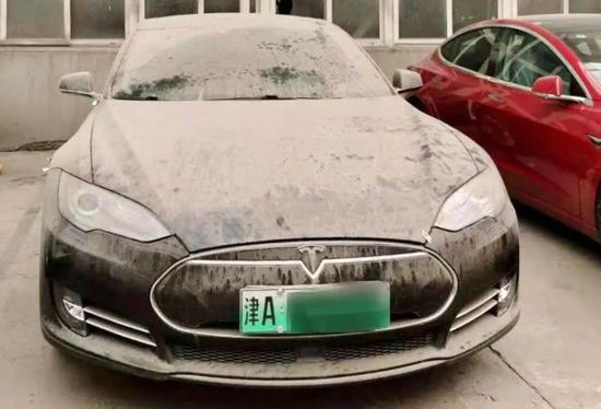 韩潮的Model S 在天津旺港特斯拉中心地上车库落满了灰