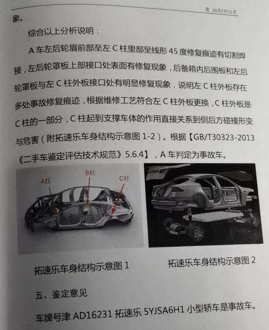 大约10天左右,鉴定报告出来了,显示这辆二手特斯拉Model S是辆“事故车”。