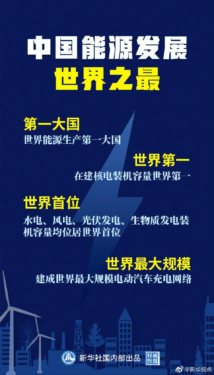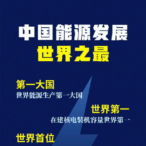 【#权威快报# | #能源中国世界之最#】根据国务院新闻办公室21日发布的《新时代的中国能源发展》白皮书,中国能源发展有多个世界之最:初步核算,2019年中国一次能源生产总量达39.7亿吨标准煤,为世界能源生产第一大国;截至2019年底,在运在建核电装机容量6593万千瓦,居世界第二,在建核电装机容量世界第一;截至2019年底,水电、风电、光伏发电、生物质发电装机容量分别达3.56亿千瓦、2.1亿千瓦、2.04亿千瓦、2369万千瓦,均位居世界首位;截至2019年底,全国电动汽车充电基础设施达120万处,建成世界最大规模充电网络。(记者:刘羊旸 海报设计:张晨光)