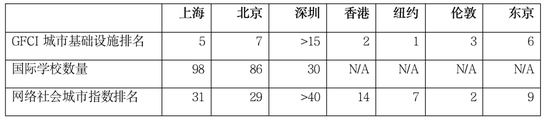 金融中心的城市生态环境对吸引国际企业和高端人才也是很重要的。我们在评估时选取了一些可比的、与金融中心相关性较高的指标,评估结果列于表4。上海在国际金融中心的城市基础设施中的排名相对较高,而上海的国际学校数量在境内三个城市里也是最多的,有利于吸引国际人才。