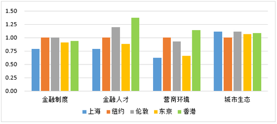 注:具体打分以纽约为基准,即纽约在各个维度上的得分均计为1。