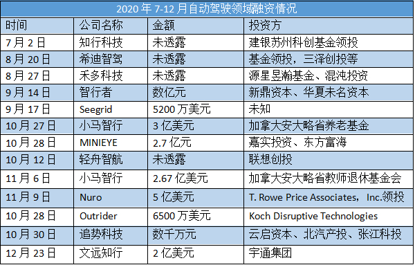 2020自动驾驶融资堪称疯狂。