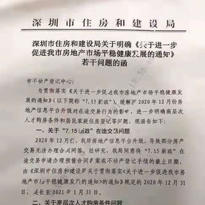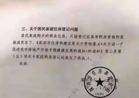 1月20日晚间,一封深圳市住建局的发函在网上流传,疑似是关于“715新政”的最新补充细则。