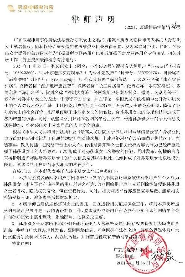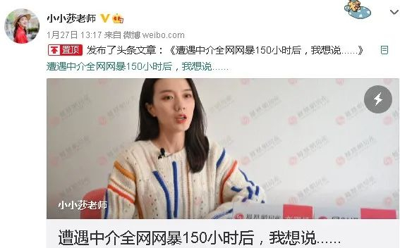 小小莎在1月27日作出最新回应:《遭遇中介全网网暴150小时后,我想说......》。