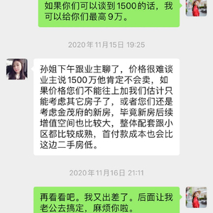 中介谈完的结果是:第一,房价是1620万,业主不同意降到1500万;第二,中介费要收1%,也就是16万左右。