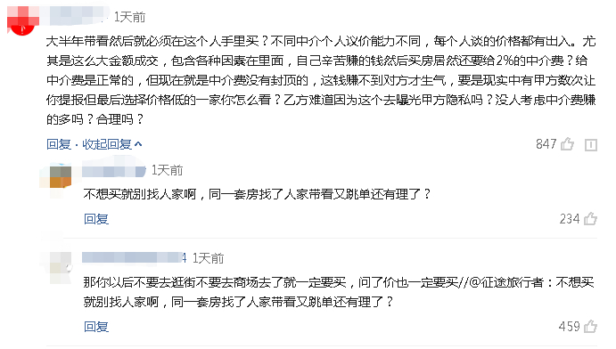 网上也刷屏该事件,有网友认为,销售带你找房看房有时间成本,自己享受了大中介找找房源、看房的资源,又转头找小中介签约,即使没有跟大中介签任何合约,从道德意义上这叫做白嫖,白嫖可耻。