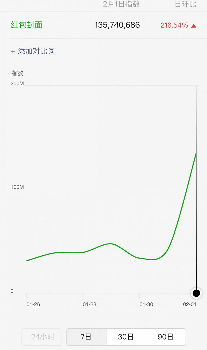 眼下,微信、微博、知乎等平台上,都留下了用户“求红包封面”的身影,关于“怎么拥有红包封面制作者身份”的提问也层出不穷。此外,#红包封面#这一关键词热度持续上升,微信指数在2月1日达到了1.35亿,日环比增长216.54%。
