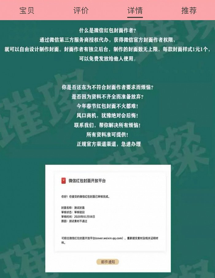 目前来看,微信定制红包封面确实衍生出了一个庞大的产业链,从设计到创作者资质出售再到非官方渠道售卖环环相扣,各环节都有着定位不同的“变现者”。