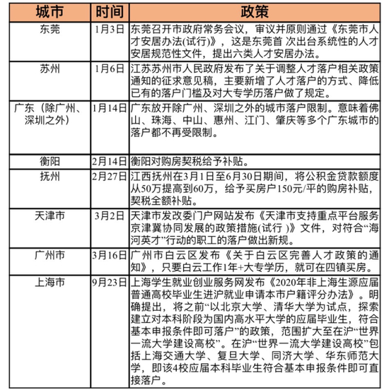 2020刚需支持政策(7城)