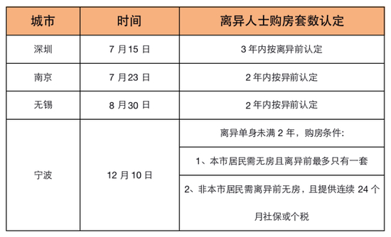 2020年离异人士购房政策调整(4城)