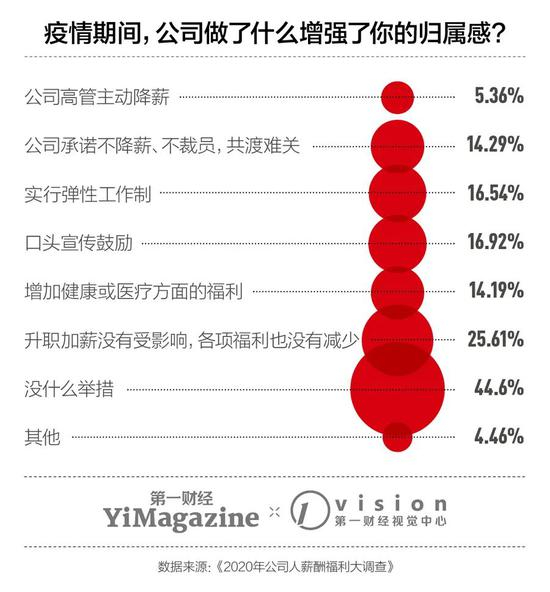 根据美世的调研,2020年上半年,员工主动离职率仅有5.4%,这个数字在2019年是12.1%。特殊情况下,“先保住饭碗”是公司人的普遍心态。在《调查》中,58.07%的受访者表示对今年的收入状况“还算满意”,因为“今年情况特殊,能维稳就不错了”。
