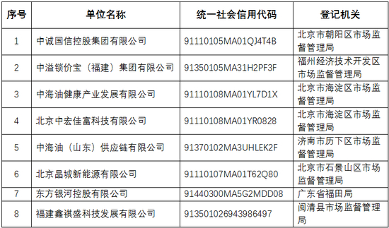 附件:8家虚假登记为中海油信息技术(北京)有限责任公司的全资子公司名单