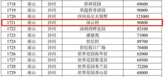 如今转到2021年,官方规定的深云村的成交参考价为9.08万/㎡。