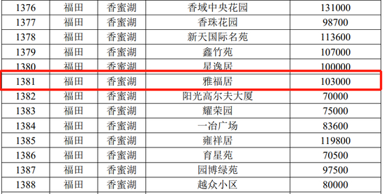 同样规定雅福居的成交参考价为10.3万/㎡。