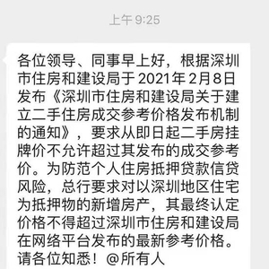 另外,总行要求对深圳地区住宅为抵押物的的新增房产,其最终认定价格不得超过深圳市住房和建设局在网络平台发布的最新参考价格。