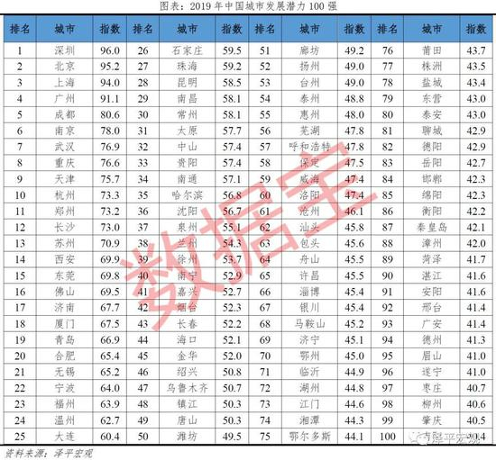 除了中国社科院和联合国人居署背书,知名经济学家任泽平近期发布了中国城市发展潜力排名,深圳以96分的成绩,超过北京、上海、广州等城市,同样位居榜首。