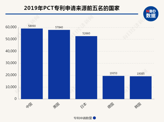 2019年中国通过PCT途径提交58990件专利申请,超过美国升至全球第一位