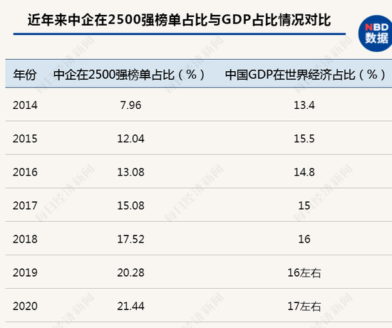 近年来中企在全球研发2500强榜单中的占比,已经高于中国GDP在世界经济中所占的份额
