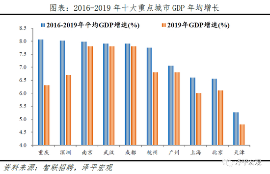 从重点城市看,我们选取十大最具发展潜力城市(深圳、北京、上海、广州、成都、南京、武汉、重庆、天津、杭州)作为观察对象,并根据一二线城市对其划分进行具体分析(详见恒大研究院2019年5月报告《中国十大最具发展潜力城市排名:2019》)。