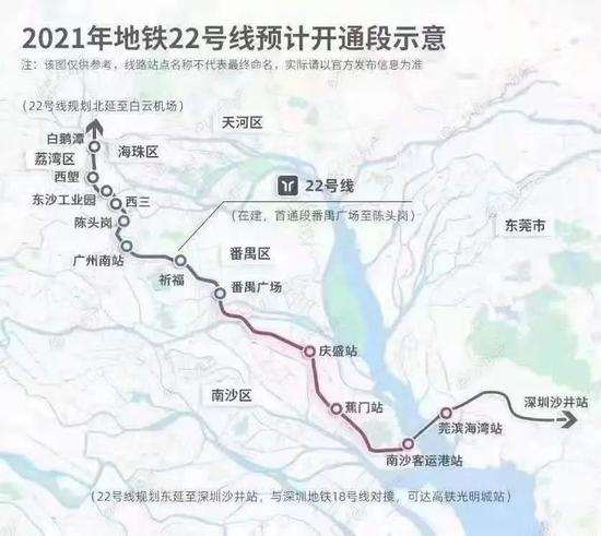 第二则重磅消息是广州地铁22号线确认延长至深圳,这也是官方首次确认22号线的南延走向。