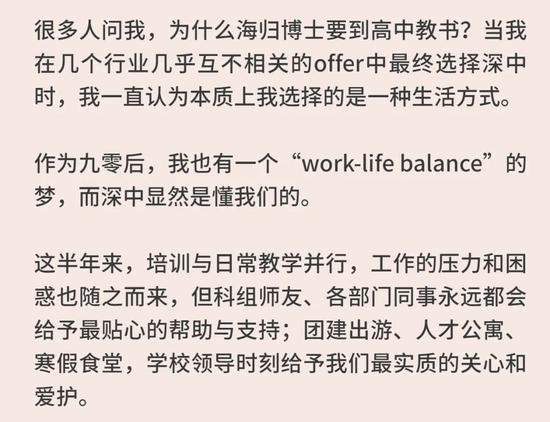 记者在“深中新教师感悟”中看到,毕业于墨尔本大学的博士范文嘉表示: