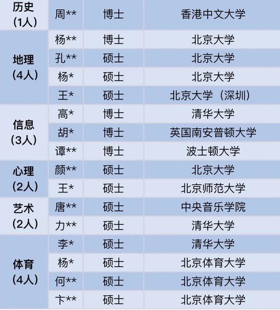 记者注意到,这份名单中,2020年该校新入职老师共66人,其中硕士39人,博士21人,博士(后)6人。