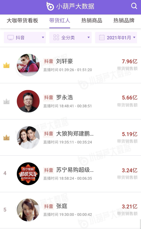 据小葫芦1月直播带货的最新数据显示,快手前五的主播里,蛋蛋、赵梦澈是东北人,猫妹妹大火前也长期在东北;抖音前五的主播里,罗永浩的老家是东北,而这TOP 10名单中,现在无一在东北带货。